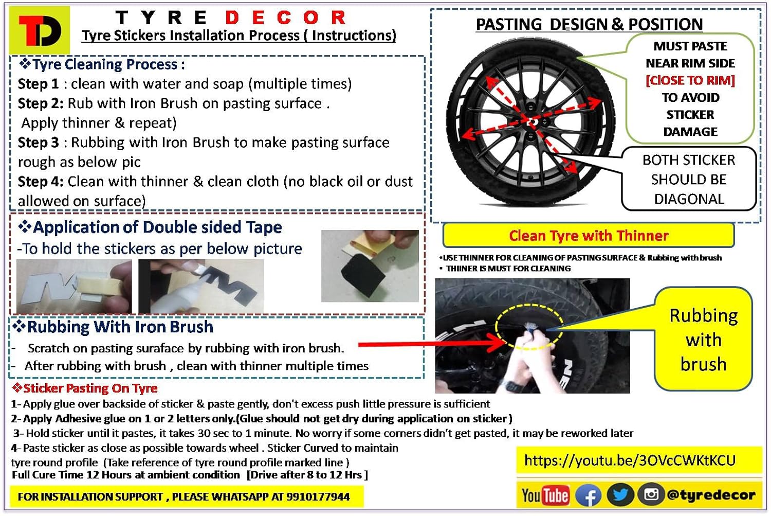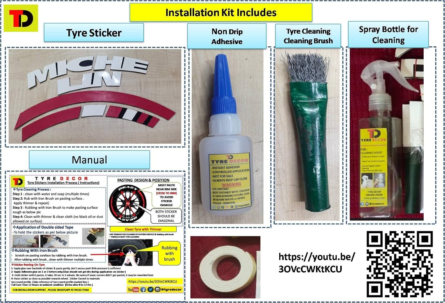 About Permanent Tyre 3D Sticker Kit – TYRE DECOR , Tyre Stickers are specially made for tyre application from high quality rubber based material. It is applicable for all tyre cars, suvs, bikes & Scooter tyres. Tyre Stickers stick strongly on tyre with the help of non drip (Instant Adhesive), which is included with tyre stickers kit. – Our Permanent Rubber Tyre Letter kits are designed for daily drivers and long term durability. These stickers are meant to last the lifetime of the tyre and are completely cleanable & Washable. Stickers (Decals) Qty. Per Kit – We sell our letter and logo kits as a complete set for the entire cars & Bikes . Each tyre letter kits is sold in qty. of 4 or 8. – Our Products are available in virtually any font! Our tyre lettering kits are offered in standard fonts in the